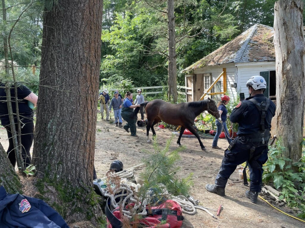 Massachusetts, NewsSeptember 26, 2024 4:58 amHorse rescued in Plainville after falling through garage