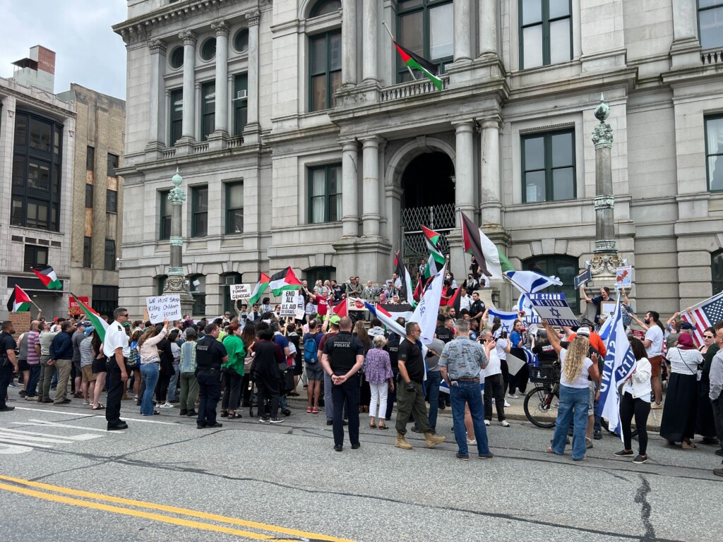 News, Providence, Rhode IslandAugust 19, 2025 6:08 pmHigh tensions outside Providence City Hall during Palestinian flag raising