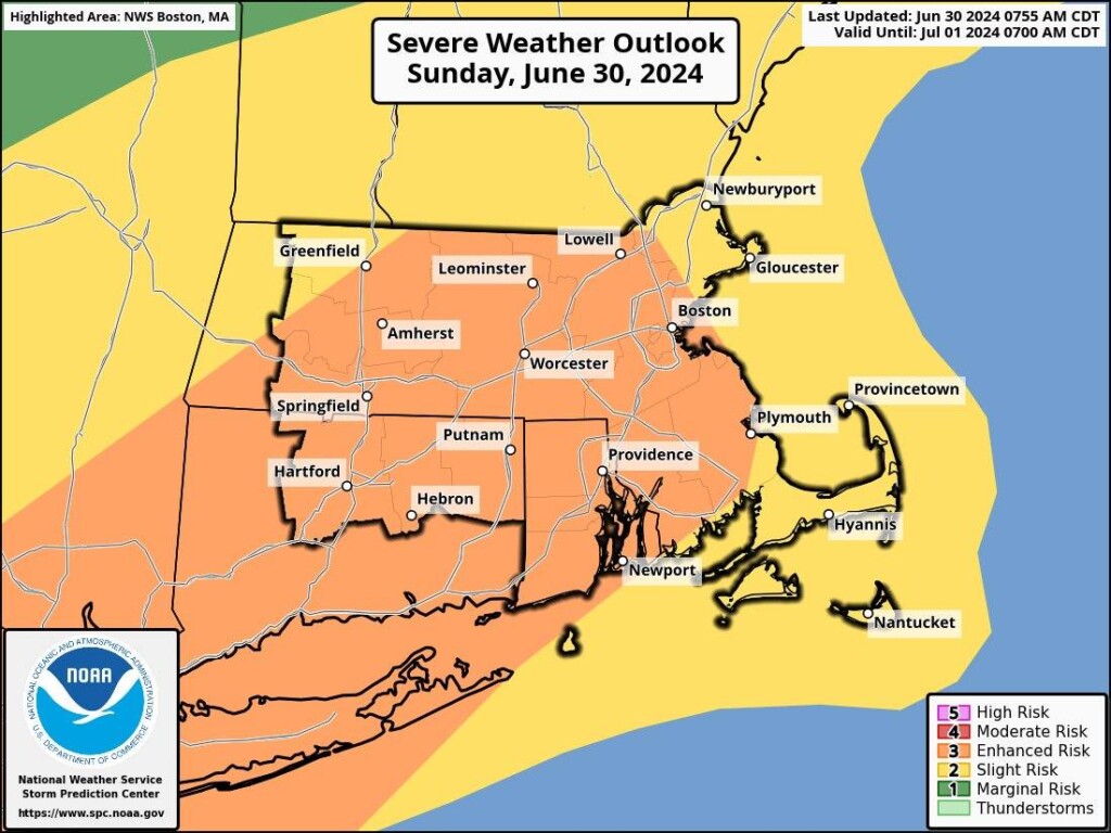 News, Regional NewsJune 30, 2024 1:32 pmNational Weather Service upgrades Southern New England storm threat