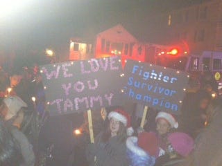 To send her off for her surgery scheduled for Friday, the community – including teachers, students, friends, family, and even Santa Claus – showed up to her home with candles and signs, singing 'Roar' by Katy Perry.