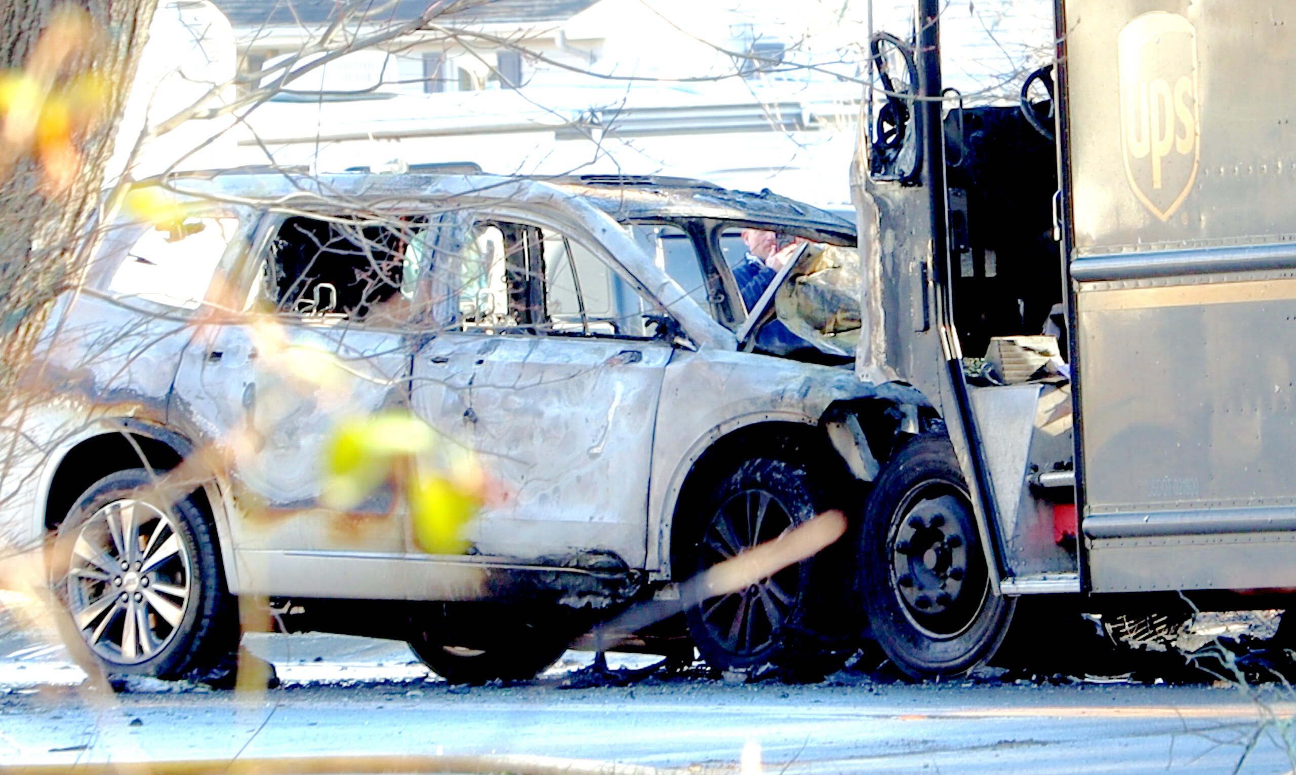 A driver died after colliding with a UPS truck in Middleborough on Feb. 9, 2024. (David Curran)