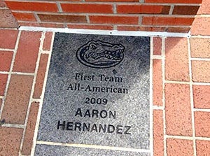Haley Costello news@abc6.us-east-1.rayoscms.net Former New England Patriots tight end Aaron Hernandez was cut again Thursday. But this time, it was his brick being cut from the Gator Walk at the University of Florida. T