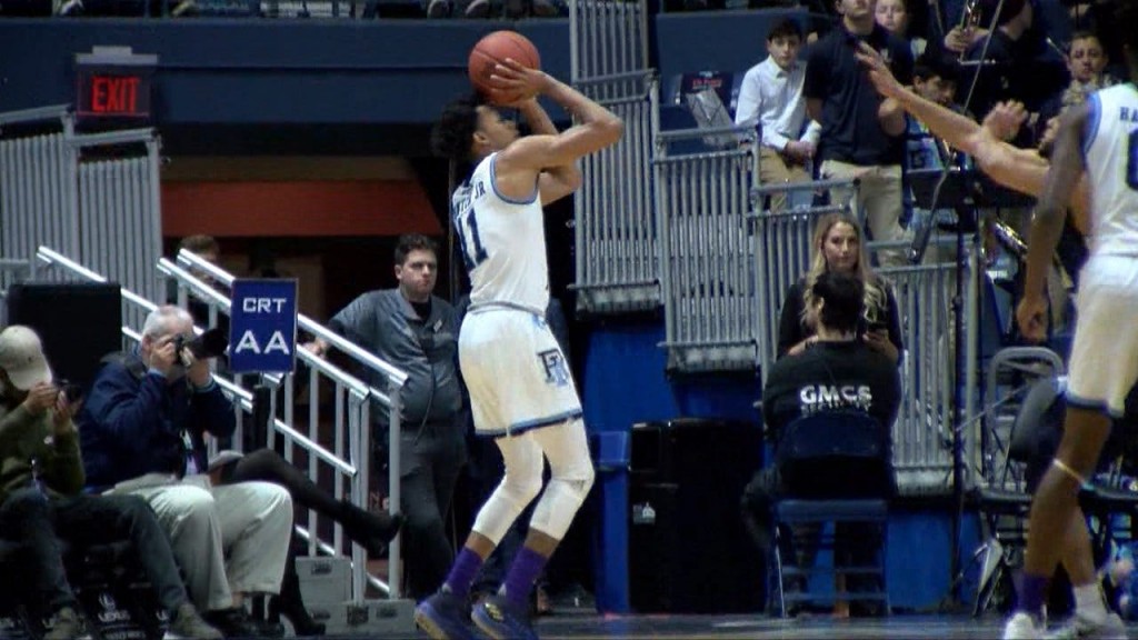 The Rams’ Jeff Dowtin and Fatts Russell each scored 18 points as Rhode Island pulled away for an 83-70 win at the Mohegan Sun arena in Connecticut.