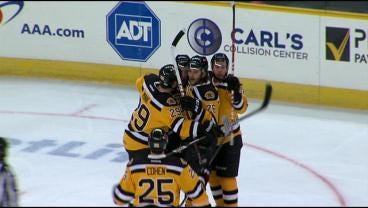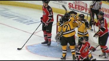 The Providence Bruins improved to 18-13-0-2 with a 5-4 win against the Bridgeport Sound Tigers this evening at the Dunkin' Donuts Center